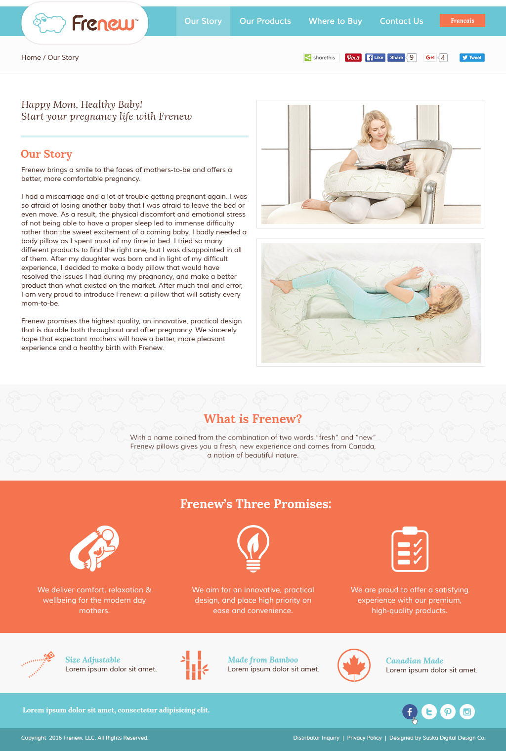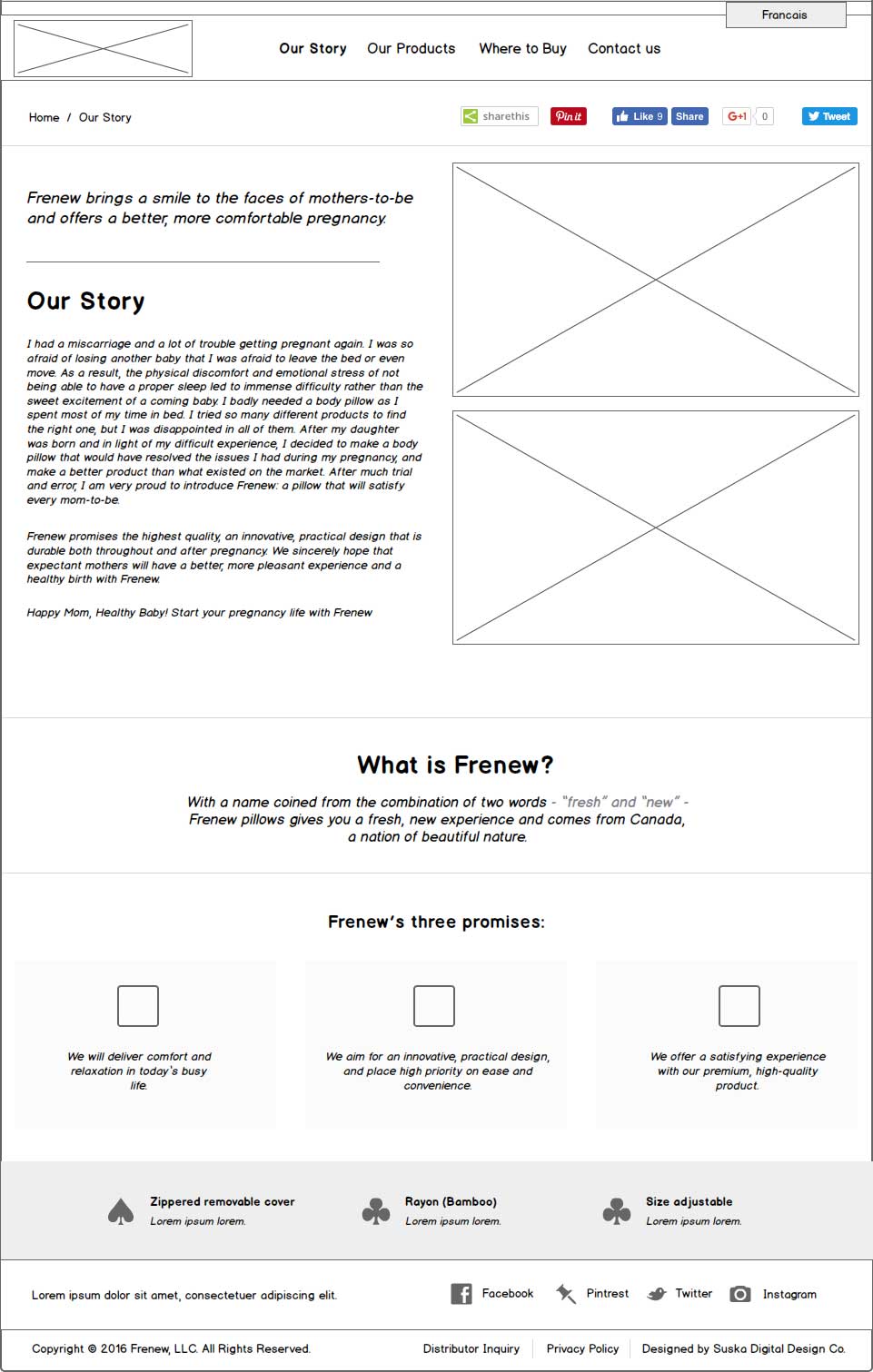 Frenew is a maternity pillow website. We built a wireframe to show the client the different ways we can layout the information as we didn’t have alot of content at the time. It allowed us to request additional content from the client, and they could in turn visualize where that content would go.