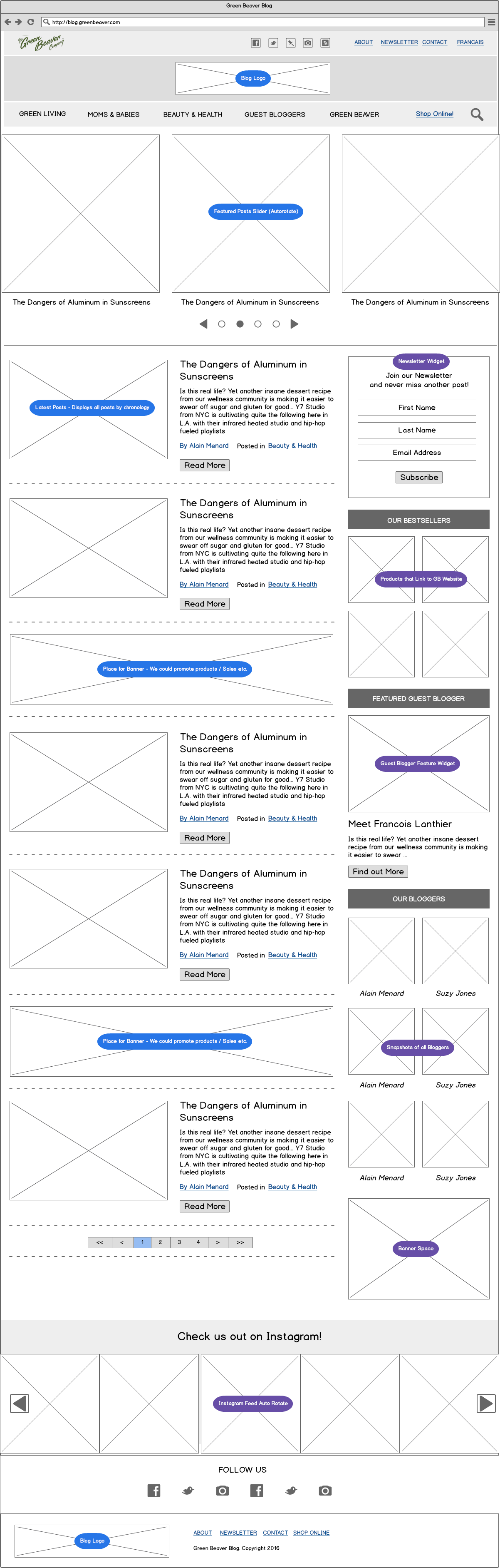 The new Green Beaver website was very complicated in the discovery phase. The owner wanted to launch a full on blog section, and a very complicated e-commerce store. A wireframe was necessary to ensure proper linkages in each section. Eventually we decided on a different direction, but a wireframe helped to define what was needed in this project.
